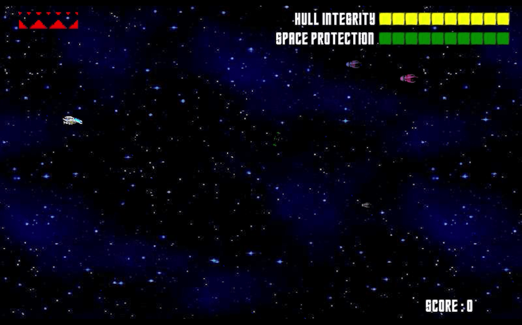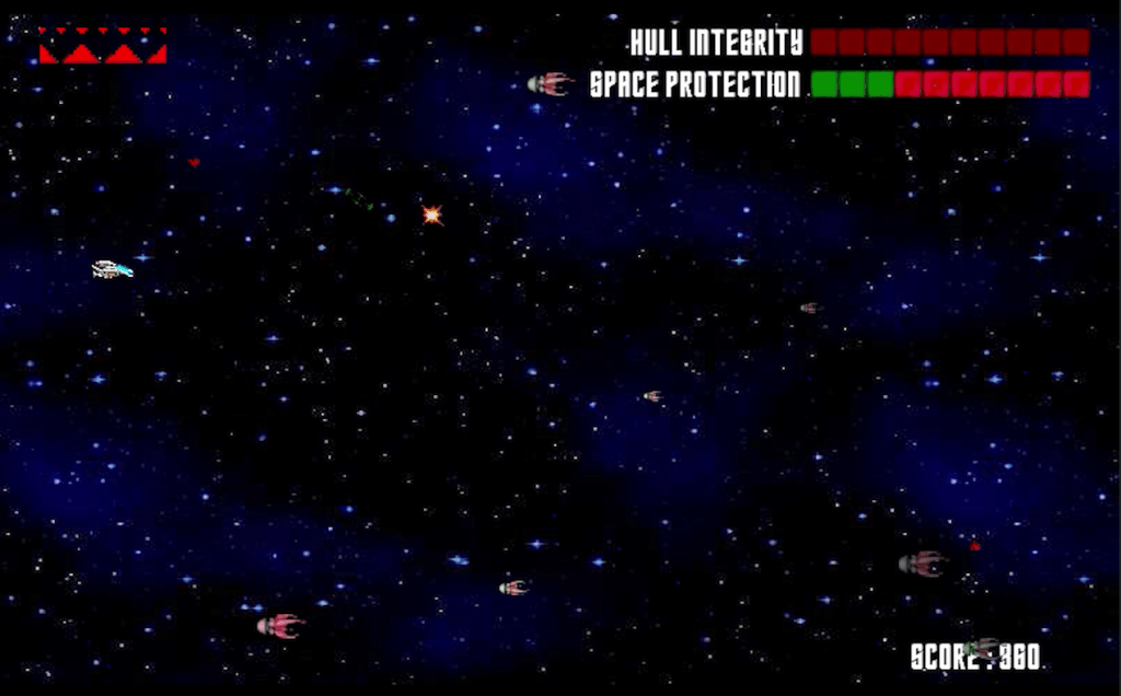 In this game the player controls a single spaceship and attempts to kill off the oncoming attackers. For each they miss, they lose protection and eventually the game.