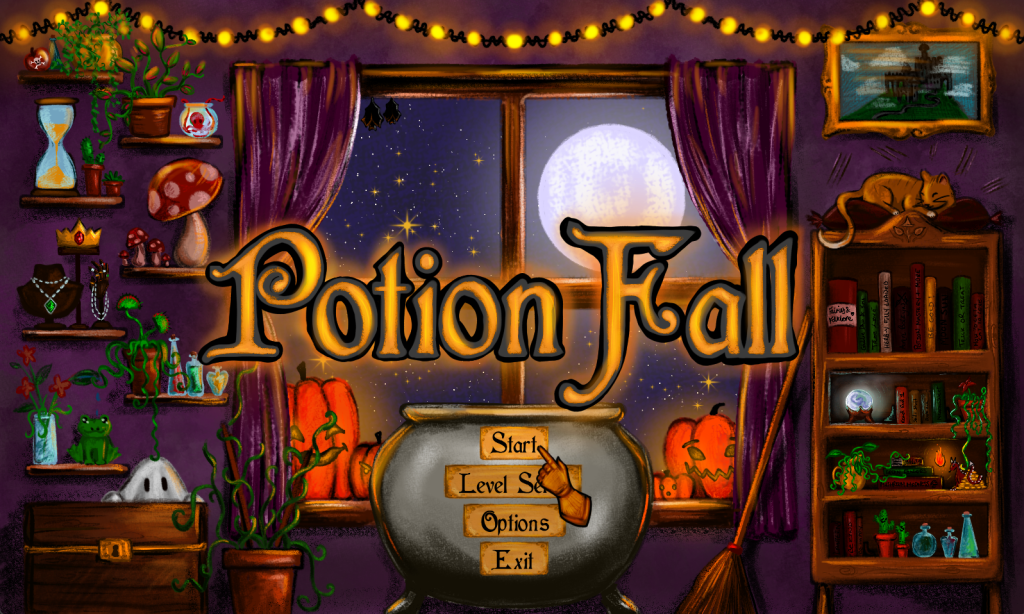 Potion Fall was a UI design project in which I created 2 versions of a Start and Level Select screen for a simple Halloween themed game. The game was to be aimed for young children and the designs needed to have different visual aesthetics.
